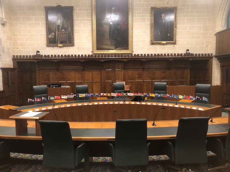 One of three courtroom’s inside the United Kingdom Supreme Court in London. This courtroom hears cases from other countries within the Commonwealth. Note the Panasonic PTZ cameras above. These cameras are controlled from the main control room where the TriCaster TC1’s are located.