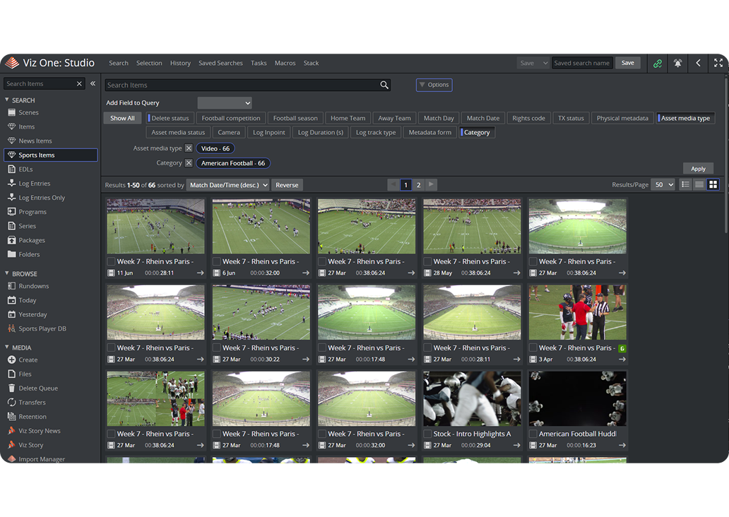 Stop searching and start creating. Our cloud-based media asset management system automatically logs sports data, letting you find the perfect highlight from your entire archive in seconds.